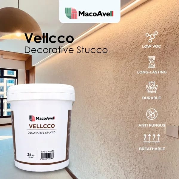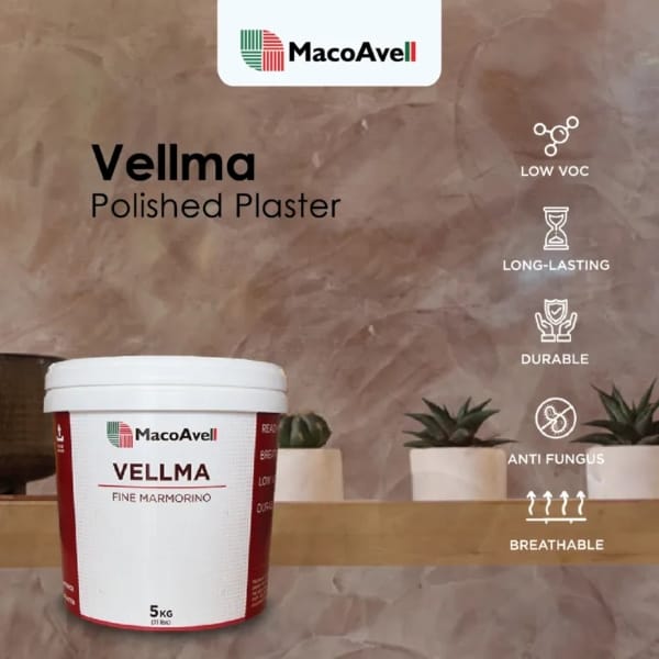 MacoAvell is a Malaysian brand of texture paint supplier and manufacturerin India, specializing in premium lime-based texture paint, Venetian plaster, and wax finishes for interior and textured walls. MacoAvell is available in a range of stunning colours, featuring a variety of Eco-Friendly Textured Wall effects, finishes, and wall designs that are almost limitless. Here are the main product lines Vellma, Vellplas, Vellcco, Vellwax, and Vellwax Metallic.